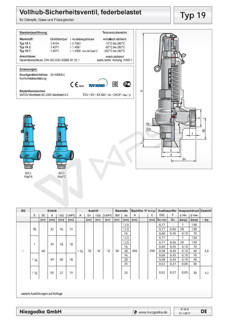 德國進口螺紋安全閥 Typ 19