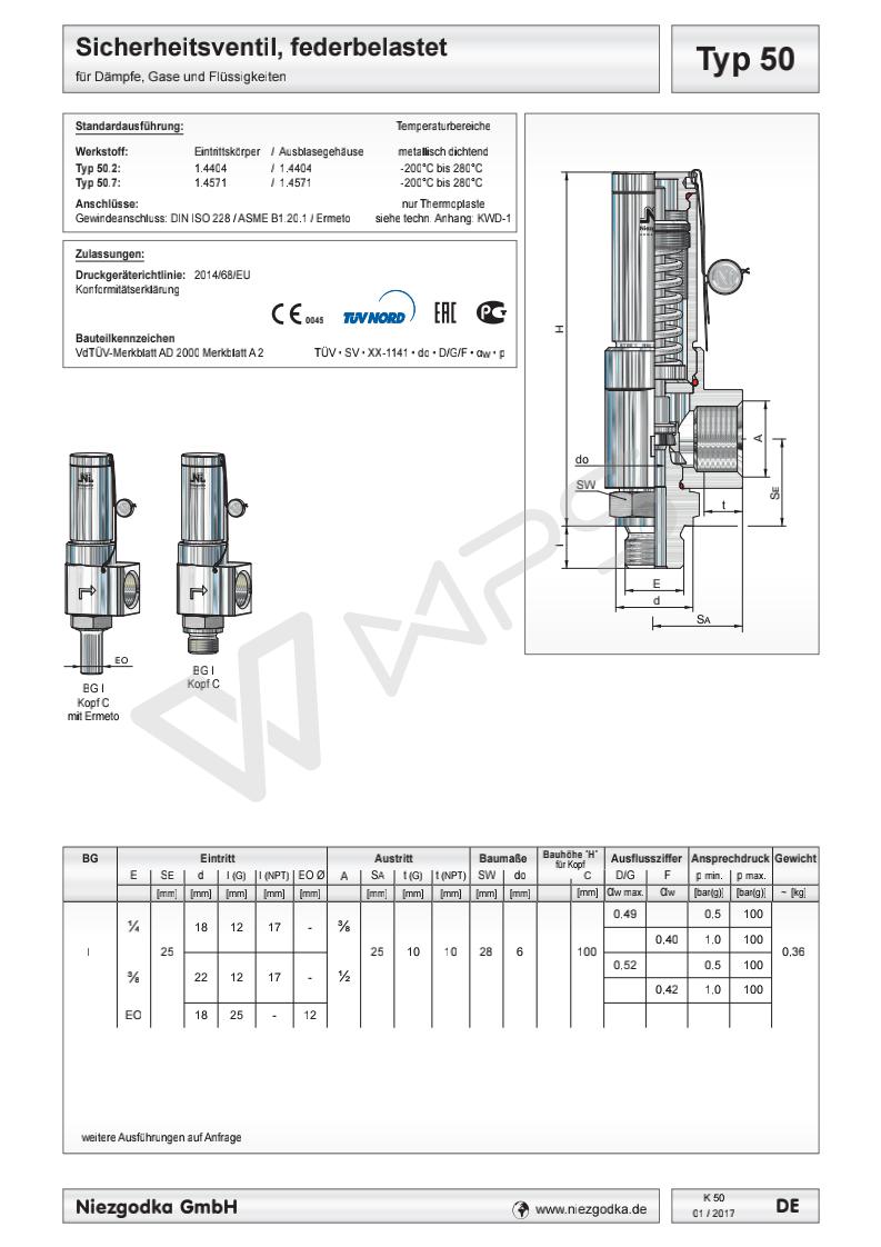 德國進口螺紋安全閥 Typ 50