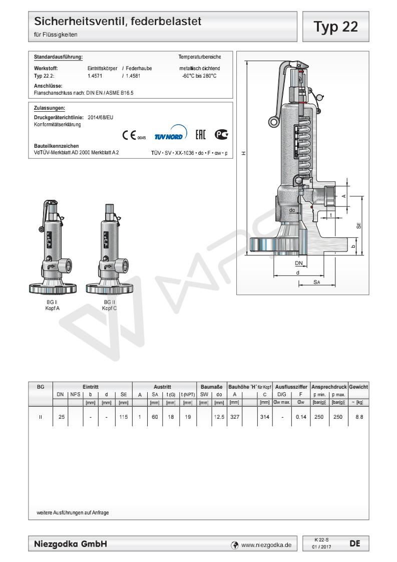 | Typ 22 Niezgodka進(jìn)口高壓法蘭安全閥 |