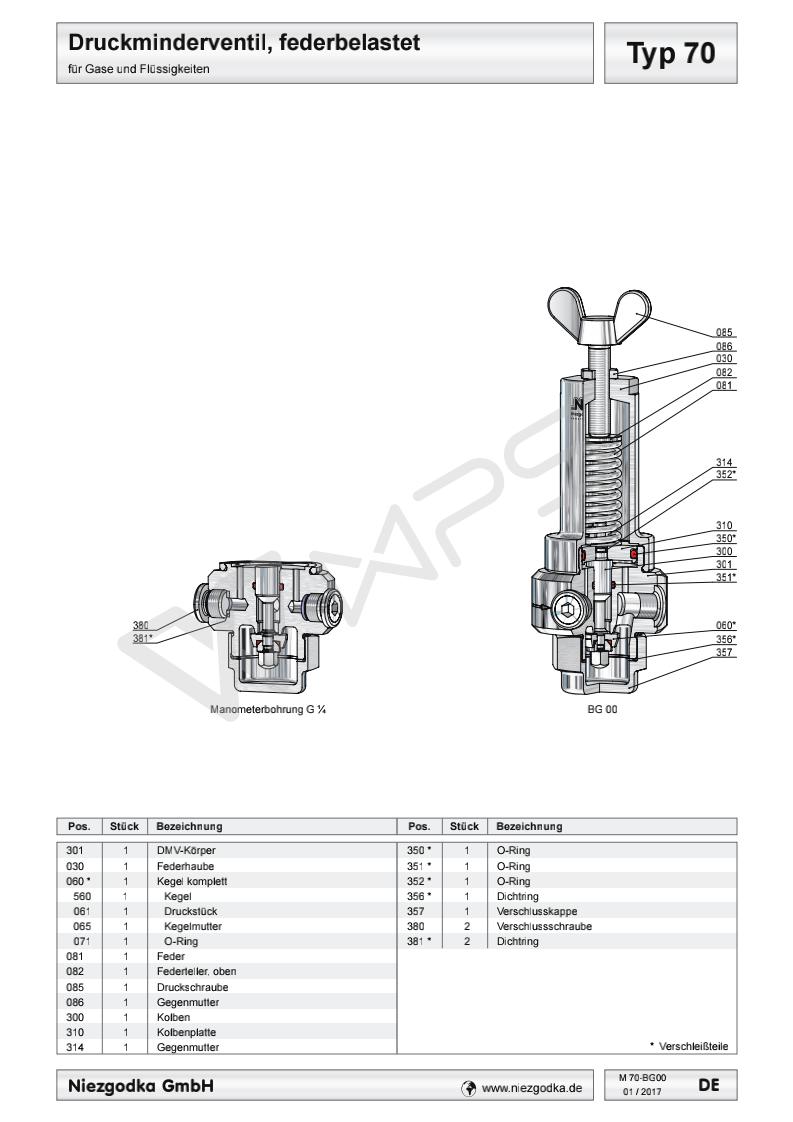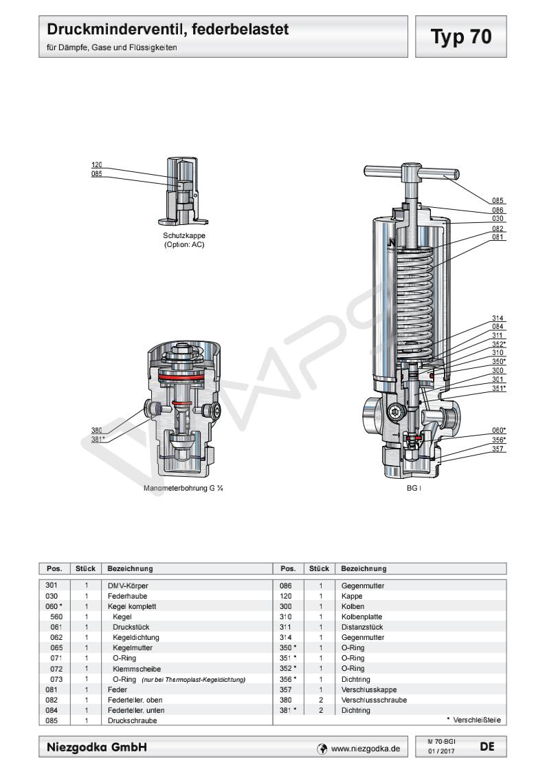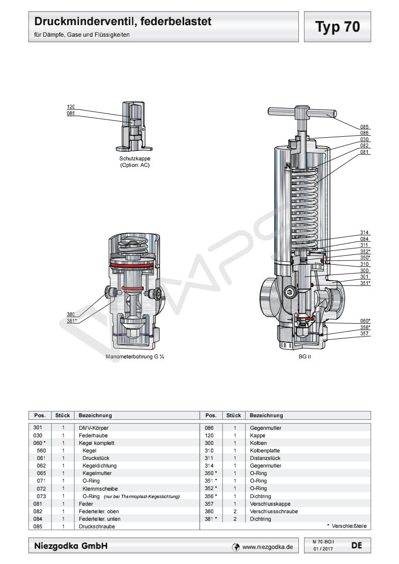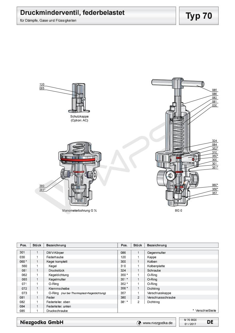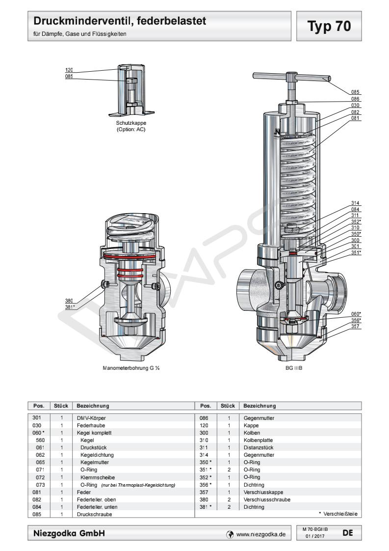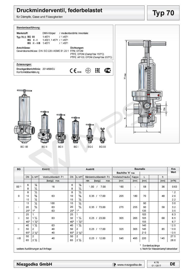 Typ 70 德國進口螺紋減壓閥的技術參數