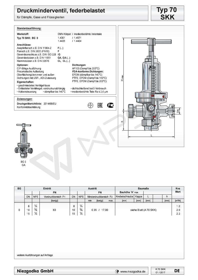 | 德國Niezgodka原裝進口衛生級減壓閥 Typ 70 SKK |