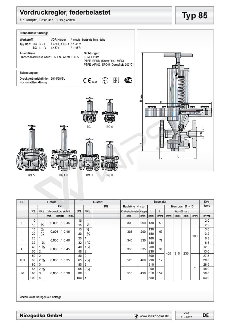 德國Niezgodka進口超低壓法蘭壓力控制閥 Typ 85
