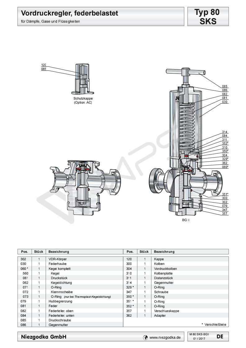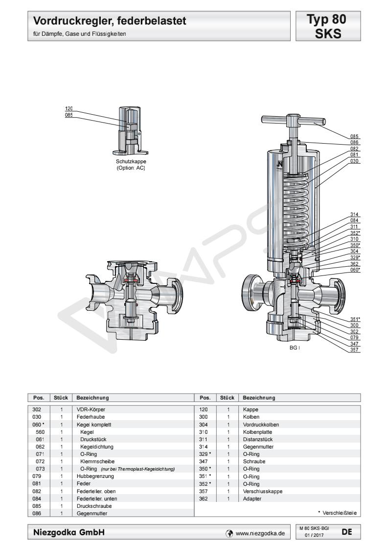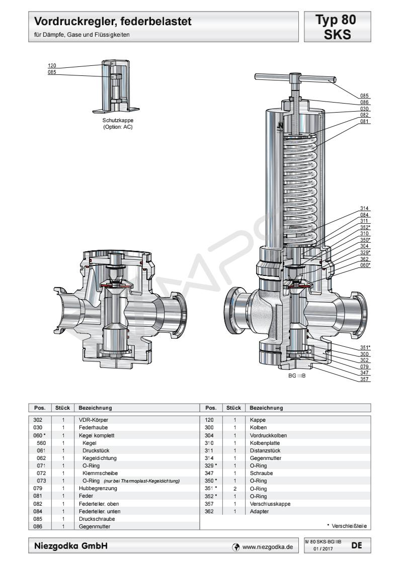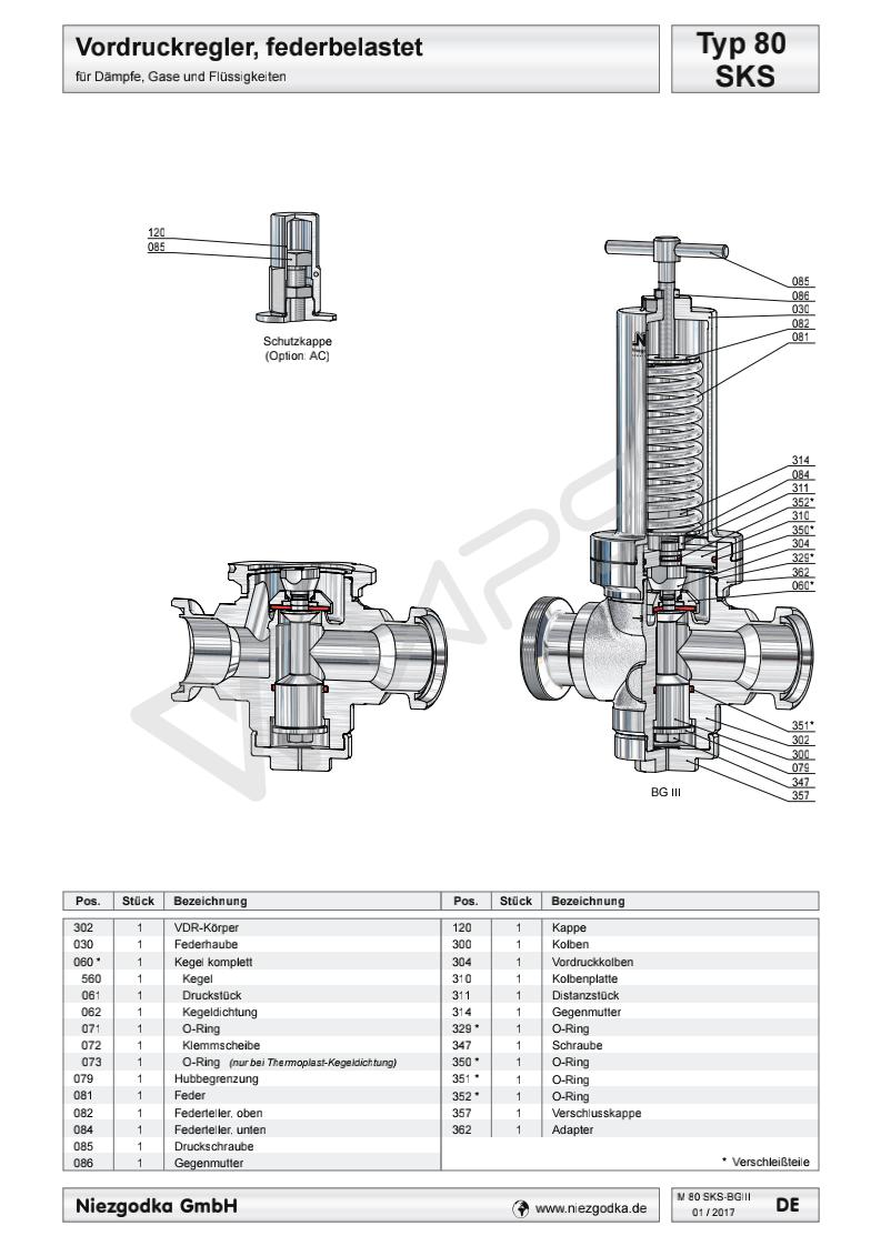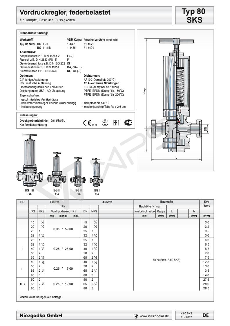 德國(guó)Niezgodka進(jìn)口衛(wèi)生級(jí)壓力控制閥 Typ 80 SKS