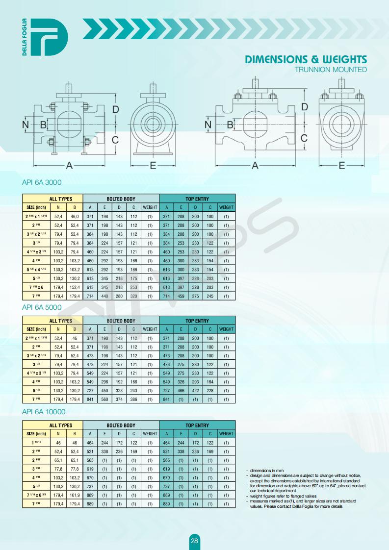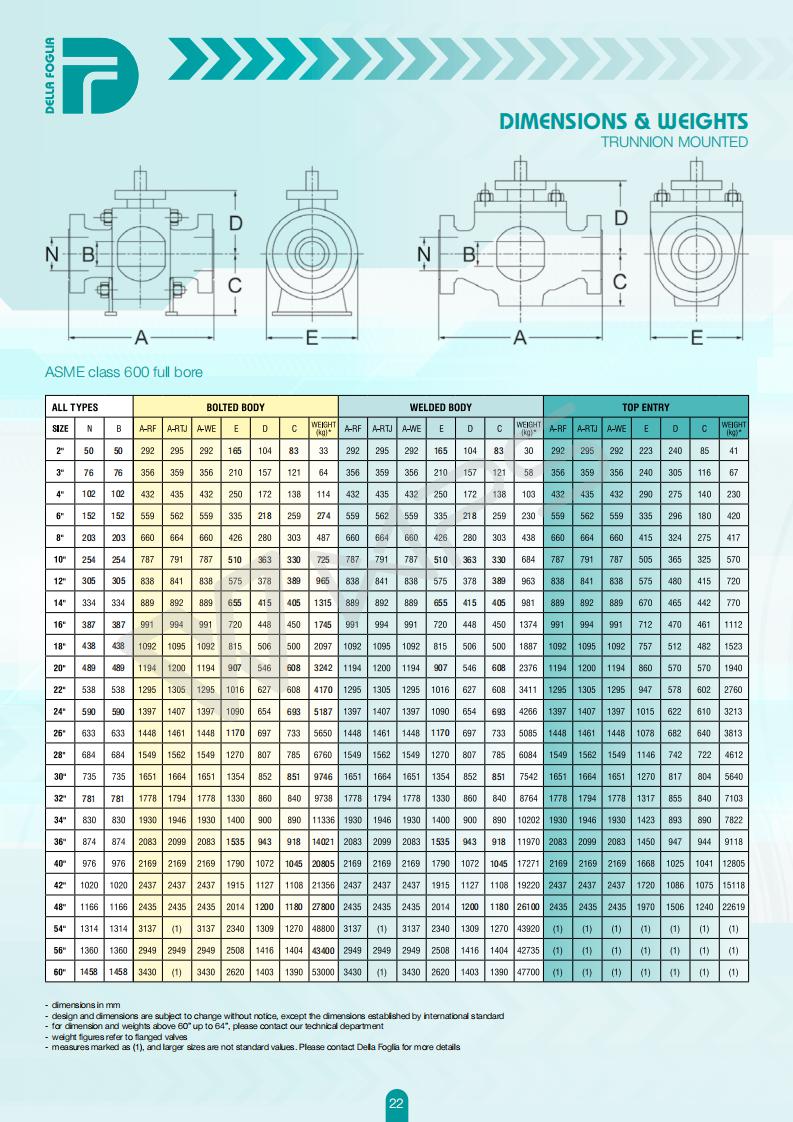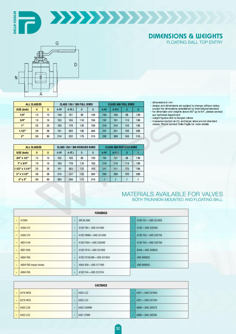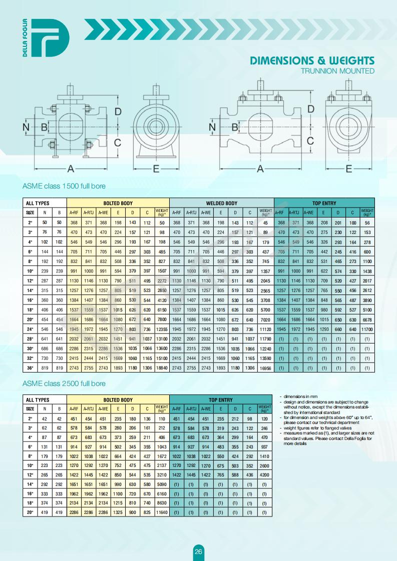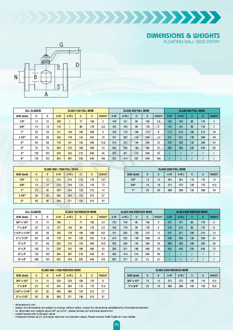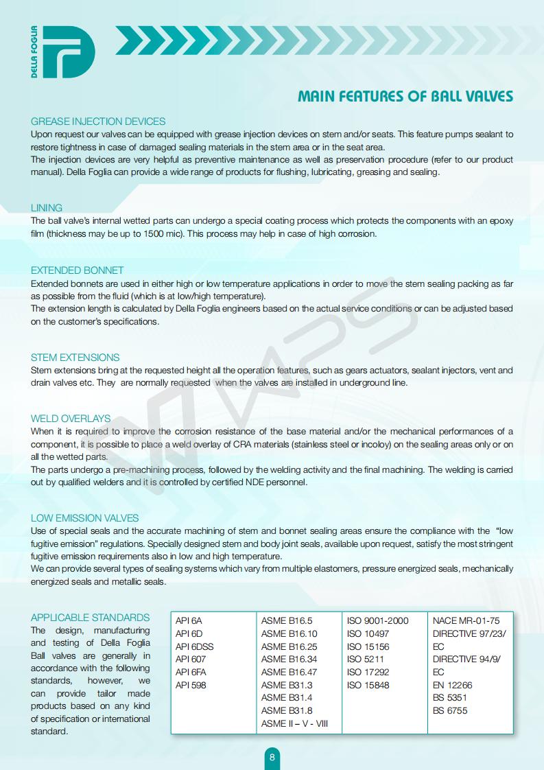意大利DELLA FOGLIA球閥的各項技術參數