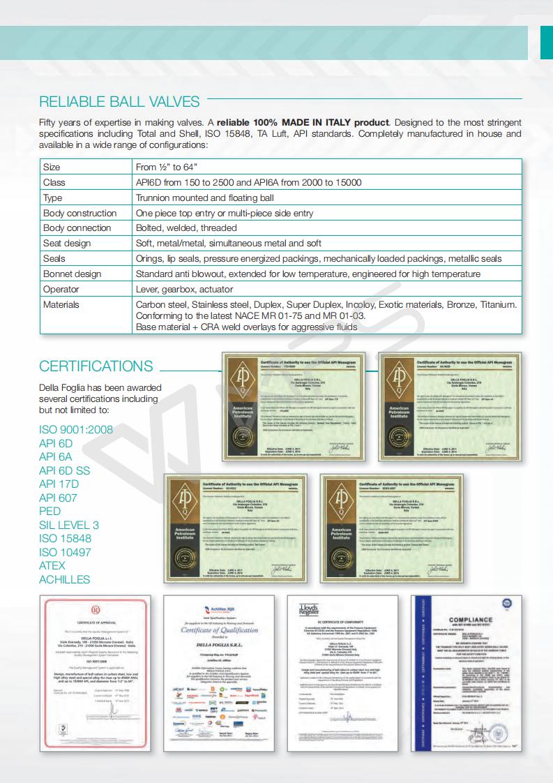 | 意大利DELLA FOGLIA球閥的技術(shù)參數(shù) |