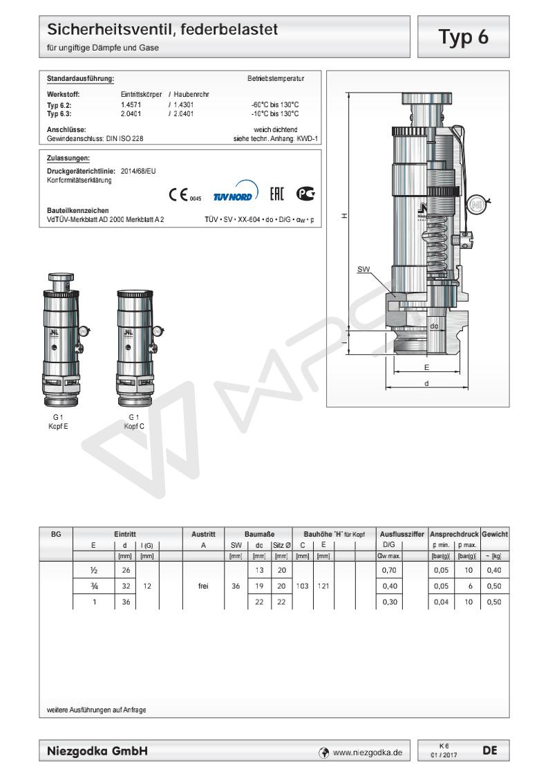 | 德國進(jìn)口螺紋安全閥、排空安全閥 Typ 6 |