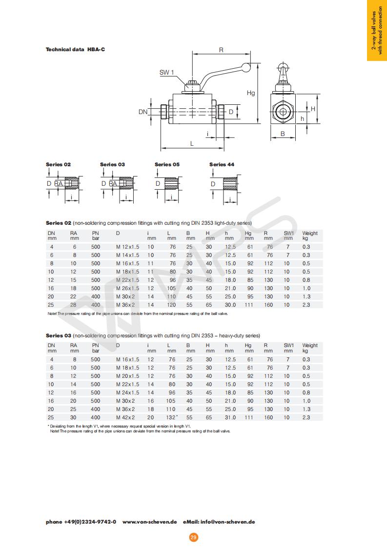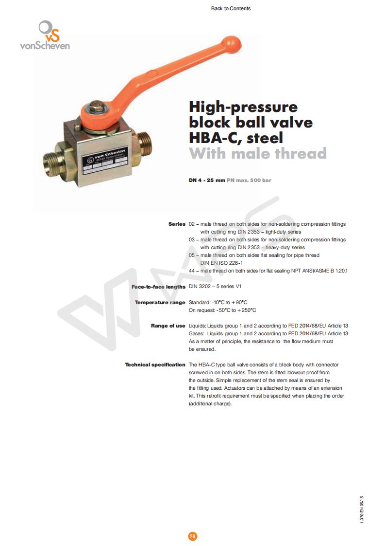 德國von scheven是歐洲著名的球閥制造商,是一家有80多年歷史的家族企業(yè)。德國von scheven的產(chǎn)品取得德國TUV認證、ISO9001認證、AD-2000認證、DGRL97/23/EG、TA-Luft認證、TEPD認證、GWI認證、VDS認證、DVGW認證、SVGW認證、俄羅斯EAC認證 技術(shù)說明:HBA-C型球閥由兩側(cè)螺紋連接的閥體組成。主軸是從外面安裝的具有防吹出功能。通過螺絲連接,便于維護密封件。可以加裝執(zhí)行器連接套件。訂購時必須指定這種改裝(額外收費)。 使用條件超出本數(shù)據(jù)表中列出的標準要求的,請另行咨詢; 必須始終遵守操作和維護說明,特別是安全說明; 有關(guān)操作和維護說明以及認證證書,請訪問江蘇卡特斯; 我們保留進行技術(shù)更改的權(quán)利。  |